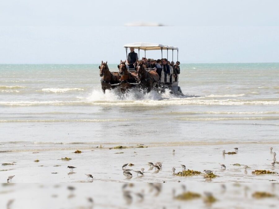 Visite des parcs à huîtres et moulières en voitures hippomobiles. Découverte d'un patrimoine naturel exceptionnel, et du savoir-faire des hommes. Dégustation d’huîtres accompagnées d’un verre de vin blanc.