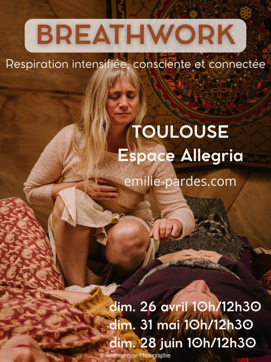 Dans ma pratique, il s’agit d’une séance de respiration intensifiée, consciente et connectée, issue de la respiration holotropique. Elle se réalise allongée, guidée par ma voix et la musique. Elle dure 2H30, dont 30mn de respiration active par la bouche.