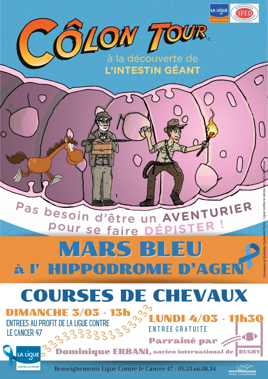 Parce que le CANCER colorectal est EVITABLE, l'Hippodrome d'Agen et la Ligue Contre le Cancer 47 s'associent dimanche 3 et lundi 4 mars pour LEVER les TABOUS!