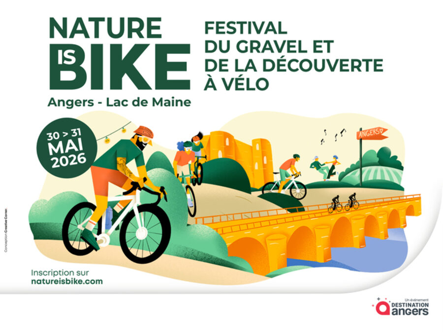 Nature is Bike, festival du gravel et de la découverte à vélo, vous donne rendez-vous, pour sa 5e édition, les 30 et 31 Mai 2026 à Angers. Nature is Bike et Angers Guinguette s’unissent pour célébrer l’art de vivre à vélo, dans une ambiance festive, locale et résolument chill. L’événement vous invite à vivre un week-end à vélo dans l’esprit gravel et vélo d’aventure : passion, exploration de territoires, partage, reconnexion à la nature avec une bonne dose de convivialité. 🌱 Au programme, des parcours & aventures avec un point de ralliement unique : le Village, implanté au Lac de Maine à Angers, au plus proche du cœur de ville. 🚲 Angers devient le spot pour tous ceux qui aiment rouler, découvrir et partager. Ce festival conjugue exploration, rencontres et découverte du territoire — pour les passionnés de vélo comme pour les curieux. Des rides tous niveaux, entre exploration et aventure : de la découverte douce à l’expérience gravel, chacun trouve sa trace. Un village vibrant : festif et ouvert, pour se réunir autour des marques vélo, de la musique, et des saveurs locales La rencontre des communautés vélo Un lifestyle outdoor : esprit chill & ride, culture vélo et plaisirs simples dans un cadre ville nature Produits locaux à l’honneur : dégustations, artisans et art de vivre angevin
