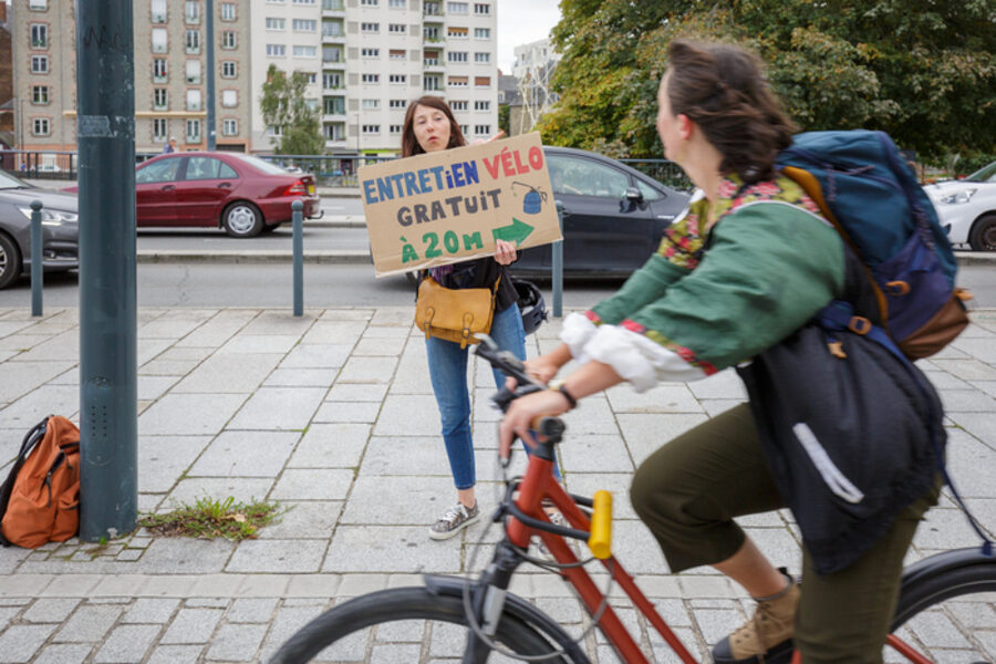 Les bénévoles de Rayons d'Action proposent de régler et d'entretenir votre vélo : une chaîne à graisser, une selle à régler, un pneu à gonfler... arrêtez-vous un instant et profitez de notre stand mobile !